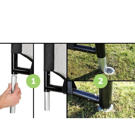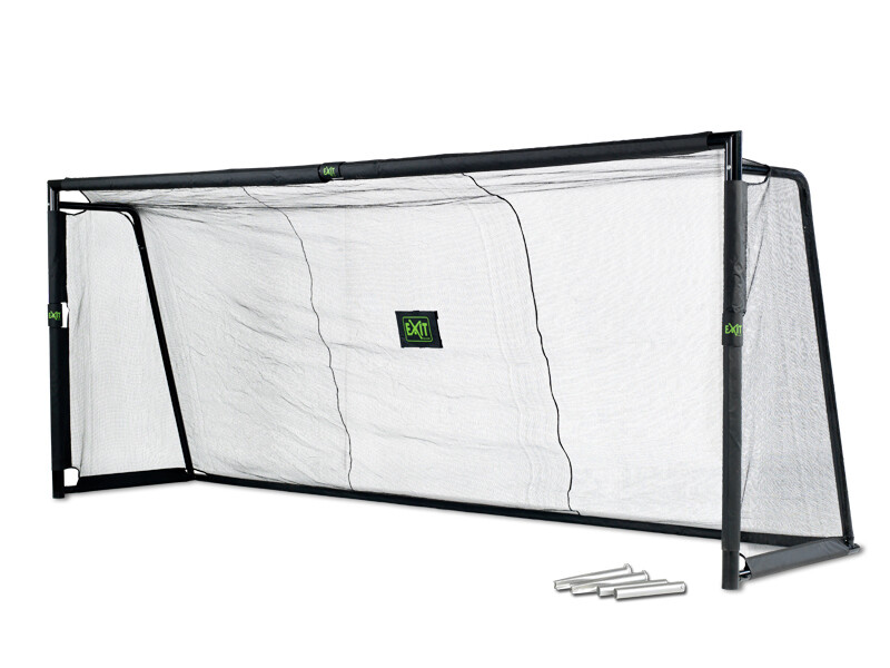 Het EXIT Forza stalen voetbaldoel is het grootste zwarte voetbaldoel van EXIT Toys. Als keeper heb je je handen vol aan dit grote voetbaldoel van maar liefst 5 meter breed. De Forza voetbaldoelen zorgen gegarandeerd voor urenlang voetbalplezier.Bij het Forza voetbaldoel van EXIT Toys wordt standaard een verankeringsset, bestaande uit grondankers en ankerbuizen, meegeleverd. Hierdoor staat het voetbaldoel stevig tijdens het voetballen, maar kun je het voetbaldoel tijdens het grasmaaien ook eenvoudig weghalen en als je weer wilt voetballen staat het doel in een handomdraai weer op de juiste plek. Het robuuste zwarte frame is gegalvaniseerd en gepoedercoat voor een lange levensduur en het fijnmazige net is hier op innovatieve wijze aan bevestigd.