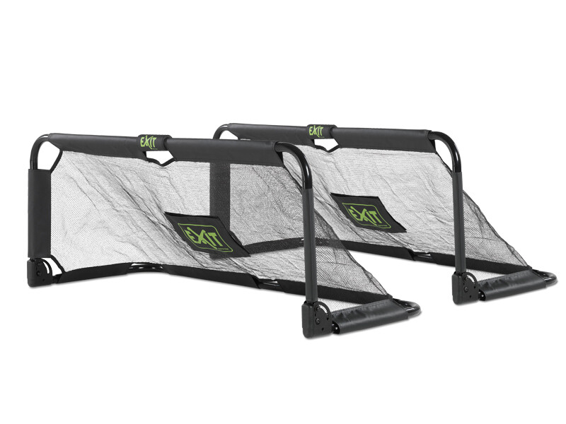 De EXIT Panna stalen voetbaldoelen zijn stevig, praktisch en mooi vormgegeven. Met deze voetbaldoelen maak je in een handomdraai iedere locatie geschikt voor een potje voetbal. De Panna voetbaldoelen van EXIT Toys zijn eenvoudig op te bergen en in een handomdraai op te bouwen. Daardoor nemen de voetbaldoelen geen permanente plek in beslag in de tuin. Het robuuste zwarte frame van het voetbaldoel is gegalvaniseerd en gepoedercoat voor een lange levensduur en het fijnmazige net is hier op innovatieve wijze aan bevestigd. Daag jij je vrienden en vriendinnen uit voor een potje pannavoetbal? Met de Panna voetbaldoelen kan het allemaal!