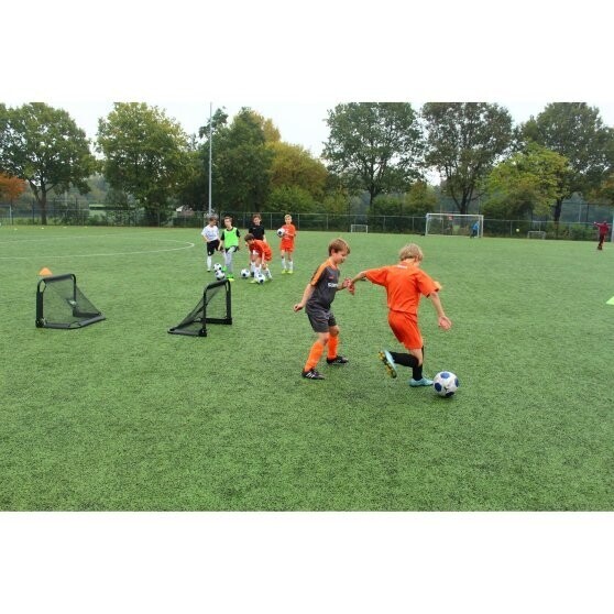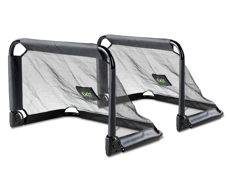 De EXIT Pico stalen voetbaldoelen zijn niet alleen stevig en praktisch maar ook mooi vormgegeven. Met deze twee voetbaldoelen maak je in een handomdraai iedere locatie geschikt voor een potje voetbal. De Pico voetbaldoelen van EXIT Toys zijn eenvoudig op te bergen en in een handomdraai op te bouwen. Daardoor nemen de voetbaldoelen geen permanente plek in beslag in de tuin. Het robuuste zwarte frame van de voetbaldoelen is gegalvaniseerd en gepoedercoat voor een lange levensduur. Daag jij je vrienden en vriendinnen uit voor een potje voetbal? Met de Pico voetbaldoelen kan het allemaal!