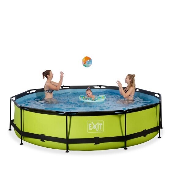 Het EXIT Lime zwembad ø360x76cm is een rond, groenkleurig frame zwembad. Het zwembad is standaard voorzien van een filterpomp en valt op tussen andere zwembaden door zijn frisse limoengroene kleur. Ben je op zoek naar een leuk en tegelijkertijd uniek en hoogwaardig frame zwembad in je tuin? Steel de show met de ronde zwembaden van EXIT Toys!