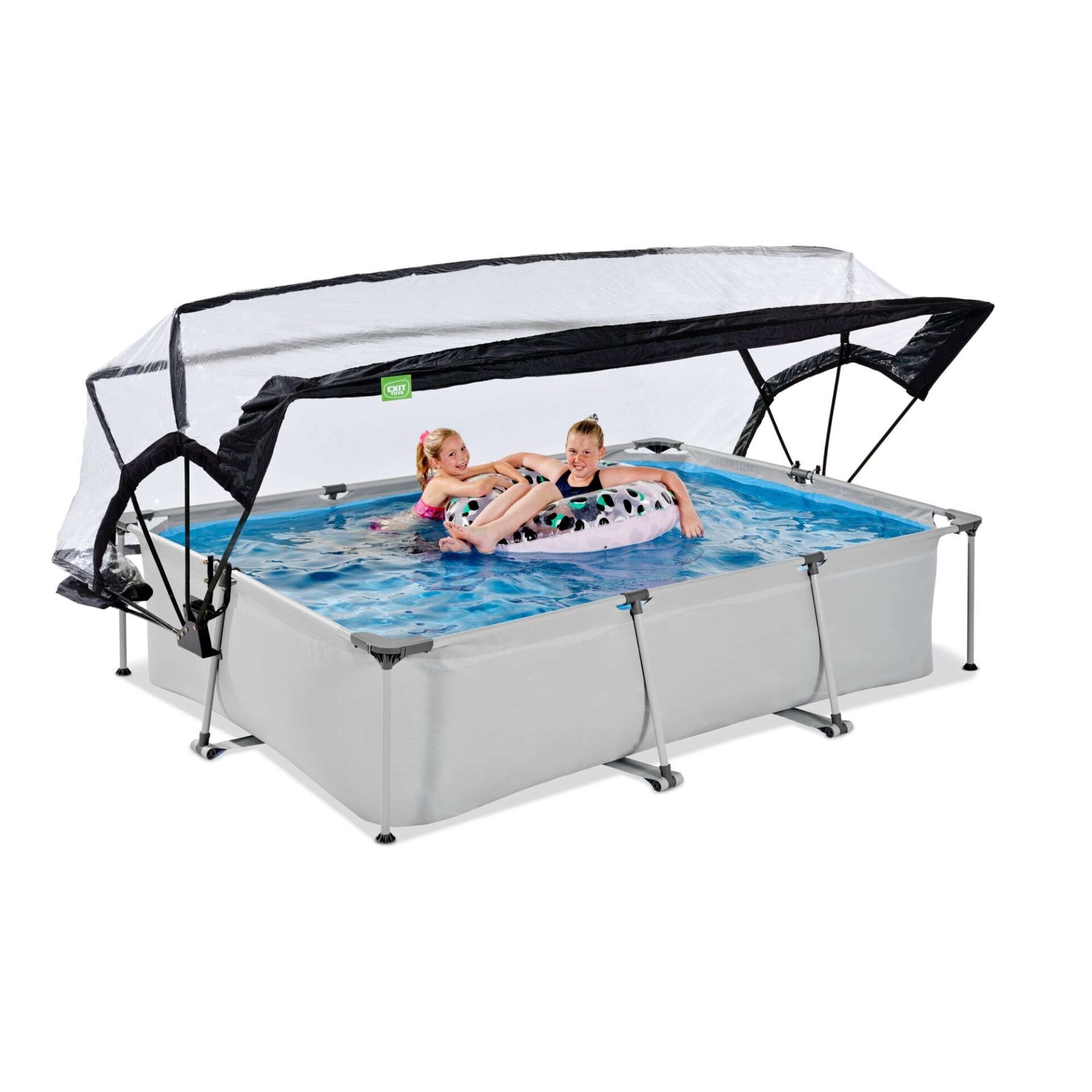 Het EXIT Soft Grey zwembad 300 x 200 x 65 cm is een rechthoekig, grijskleurig frame zwembad met overkapping. Dit compacte zwembad is standaard voorzien van een filterpomp. Ben je op zoek naar een geschikt zwembad voor jonge kinderen of een ondiep bad om zelf lekker in af te koelen? Kies dan voor het scherp geprijsde Soft Grey zwembad van EXIT Toys en voel je als een vis in het water!