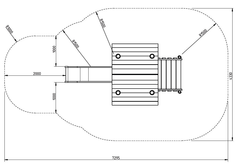 Uitvoering met langere glijbaan, platformhoogte 125cm