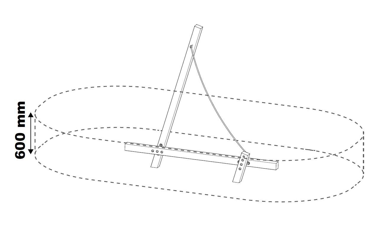 Valhoogte van dit toestel is 60cm. Als ondergrond adviseren wij gras, aarde, zand, snippers of schors. Op harde ondergrond adviseren wij rubbertegels van 25 mm dik.