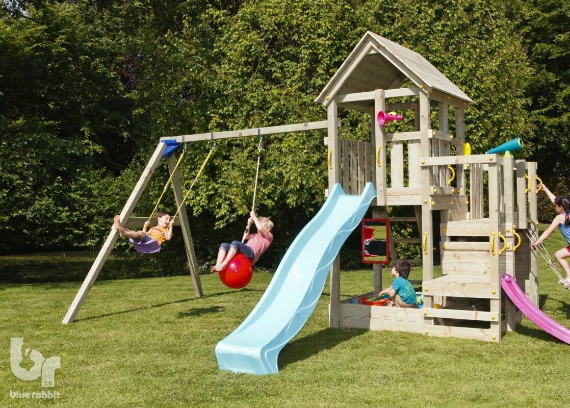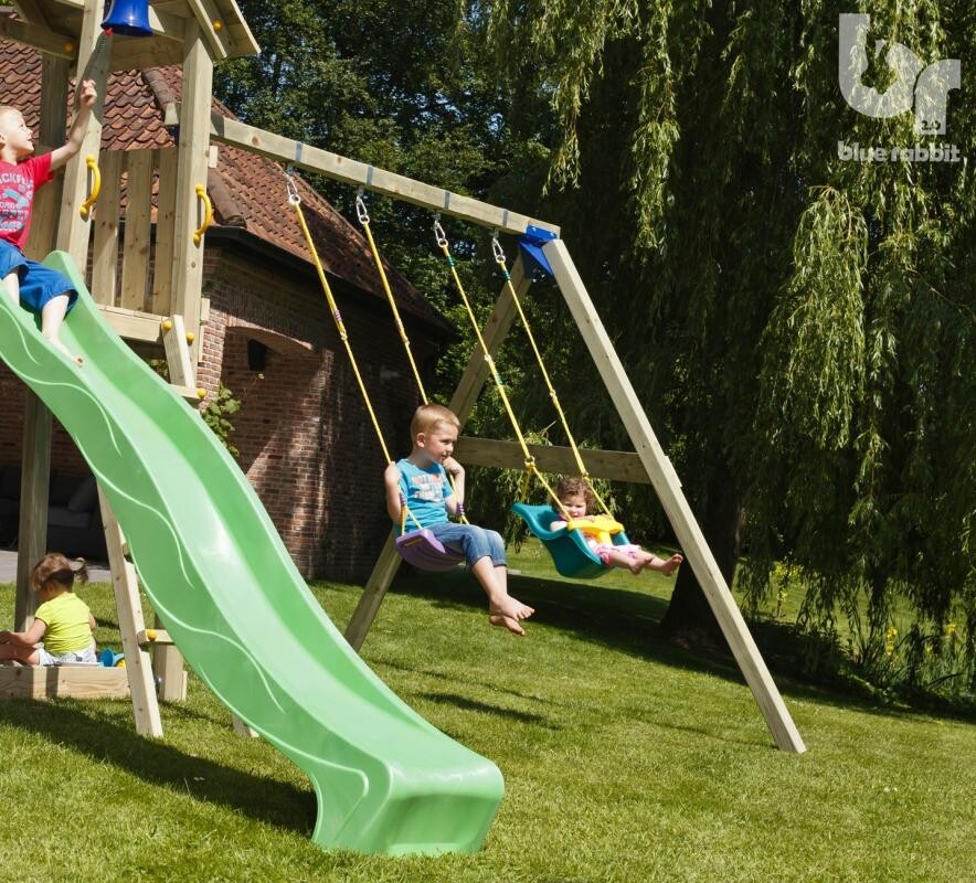 Ga je voor een speeltoren en vrijstaande schommel? Of neemt dat net te veel ruimte in beslag? Kies dan deze aanbouwschommel met een hoogte van 234 cm welke eenvoudig aan de Blue Rabbit speelhuizen te bevestigen is. De aanbouw wordt zonder zitjes geleverd. Er is een ruim aanbod aan zitjes en andere varianten schommels verkrijgbaar.