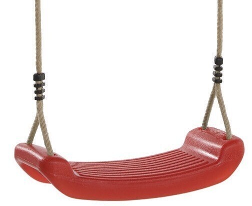 Schommelzitje van geblazen kunststof. Kleur van het zitje: rood.