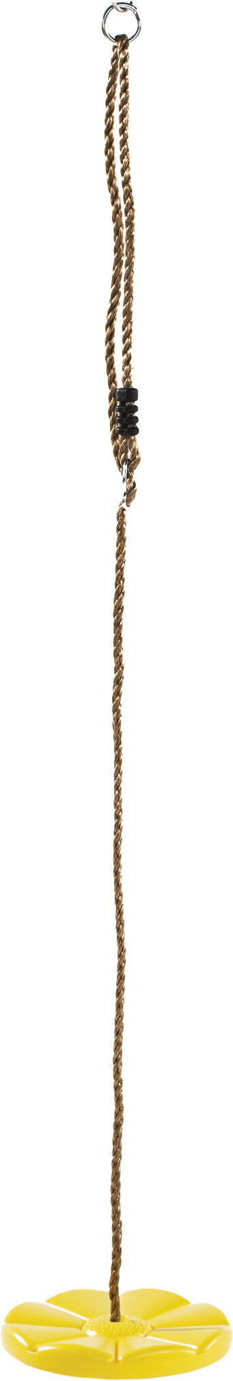 Schotelschommel, een variatie van een normaal schommelzitje. Kleur schotelschommel: Geel