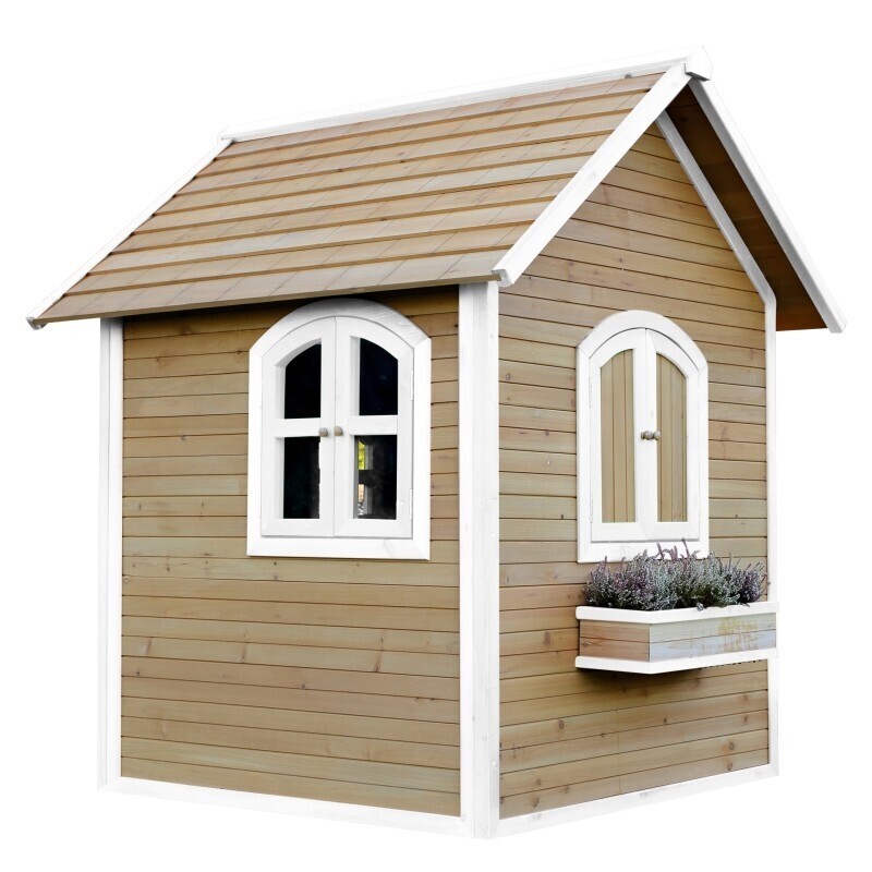 Julia is een veelzijdig houten speelhuis zonder vloer met halfronde deur en ramen. Bij mooi weer zet je de ramen open. Als het regent doe je de ramen weer dicht en zit je lekker droog. Julia kan worden uitgebreid met een veranda, een opbouw, een zandbak en schommel(s) en kan zo een Tom, Laura, Sarah of Liam speelhuis worden. \n \nDit speelhuisje is leverbaar in de kleurcombinatie: bruin/groen.