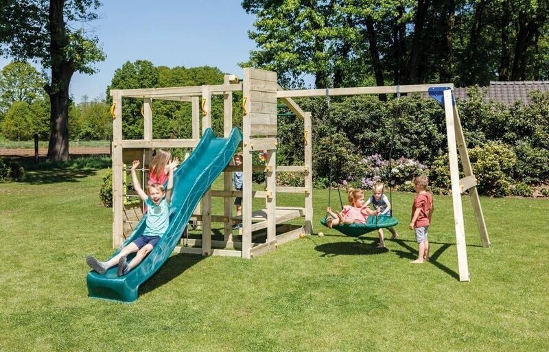 Het speeltoestel is uit te breiden met allerlei leuke aanbouwelementen zoals een aanbouwschommel. Aan het zijpaneel kan een basketbalring worden bevestigd.