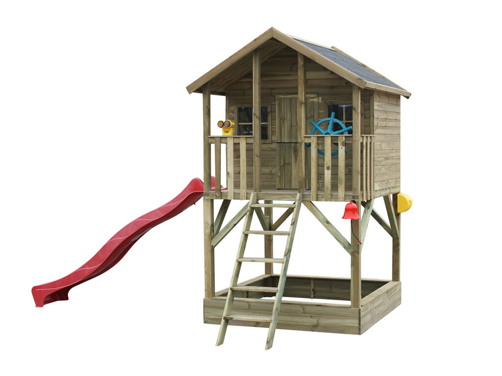 Houten speelhuis Big House Tom met diverse leuke items er op en er aan. Ook leuk uit te breiden met de accessoires! Door deze uitbreiding zullen de kinderen het houtenspeelhuis nog beter gaan gebruiken. Hierdoor zult u er ook meer plezier aan beleven.