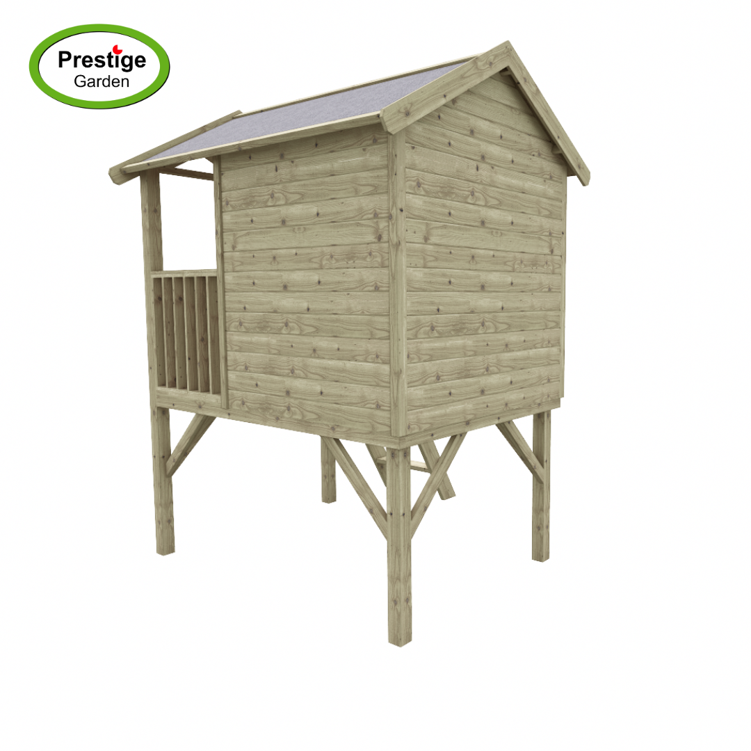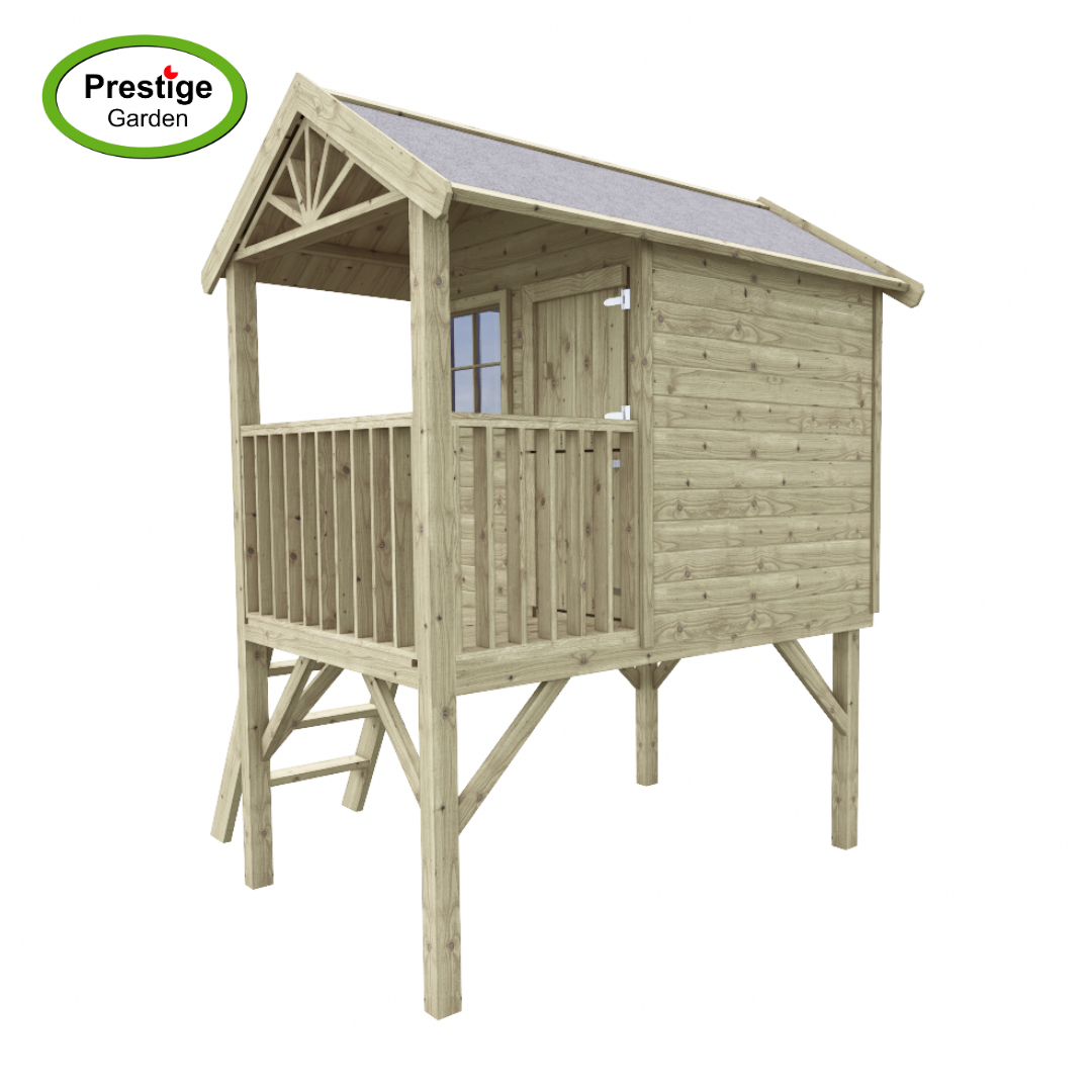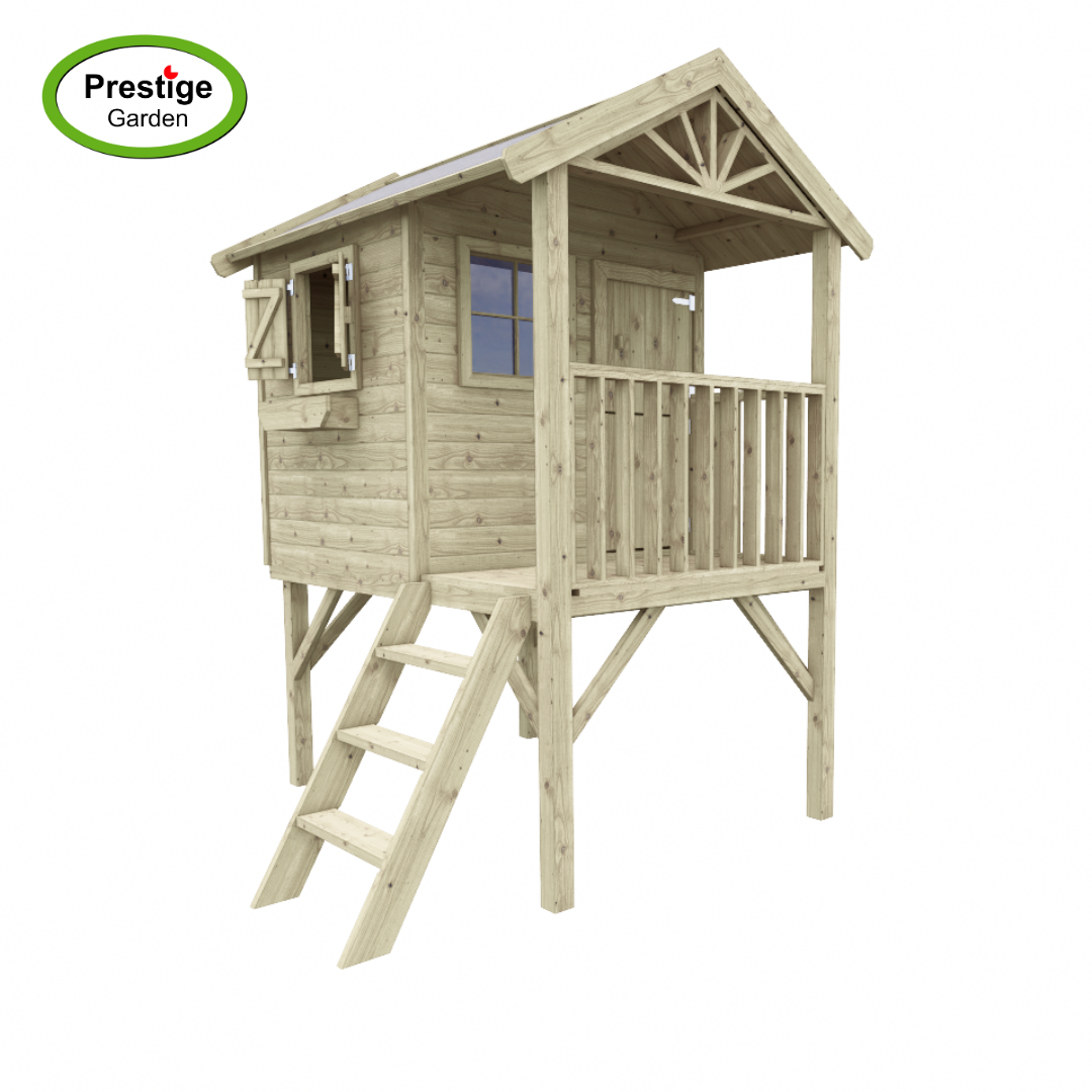 Houten speelhuis Funny XL met diverse leuke items er op en er aan. Ook leuk uit te breiden met de accessoires!