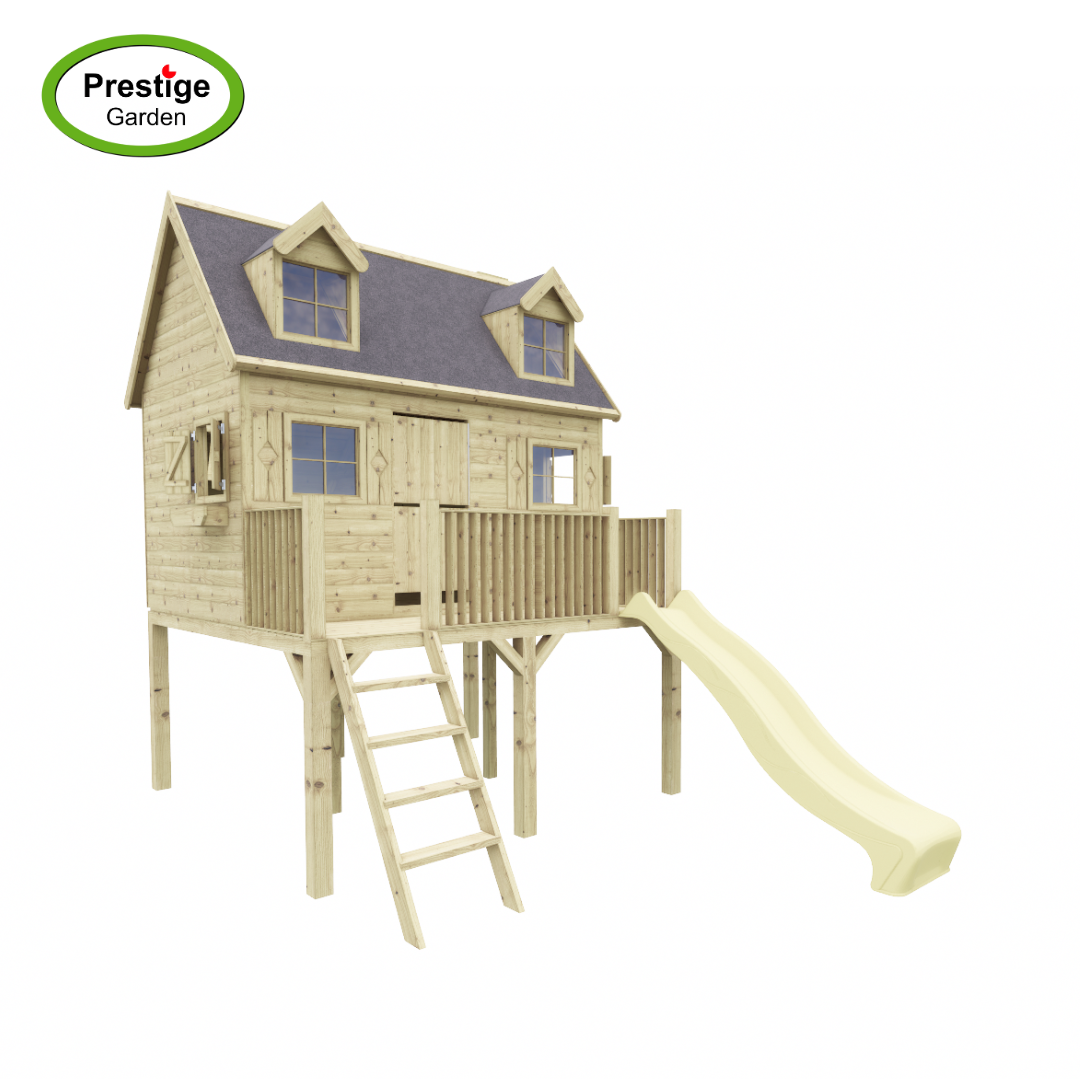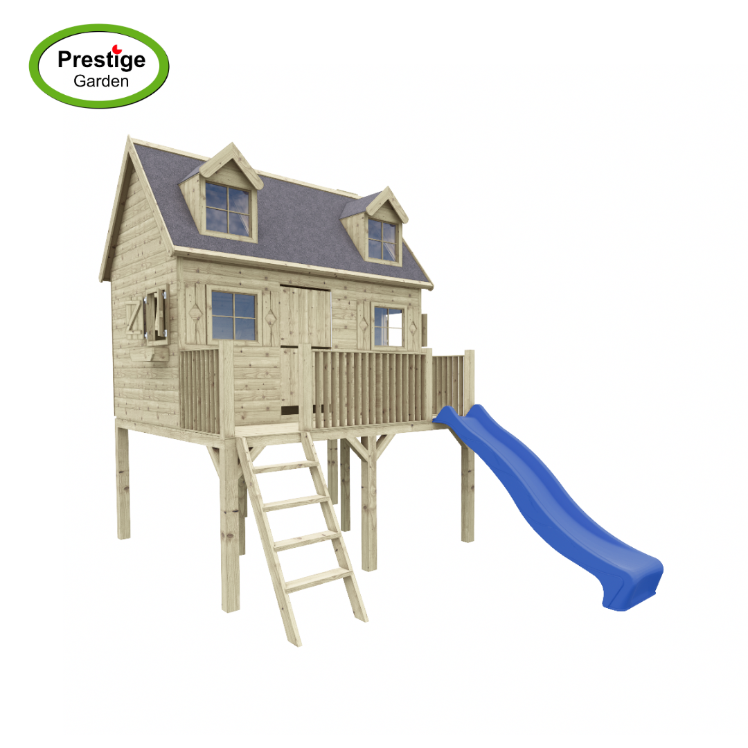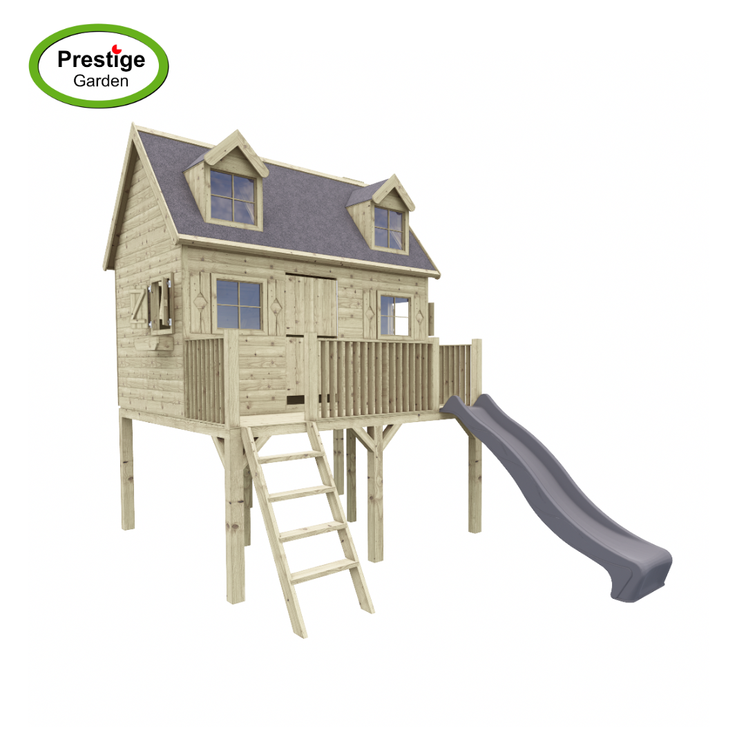Houten speelhuis Madrid - met glijbaan - Prestige Garden