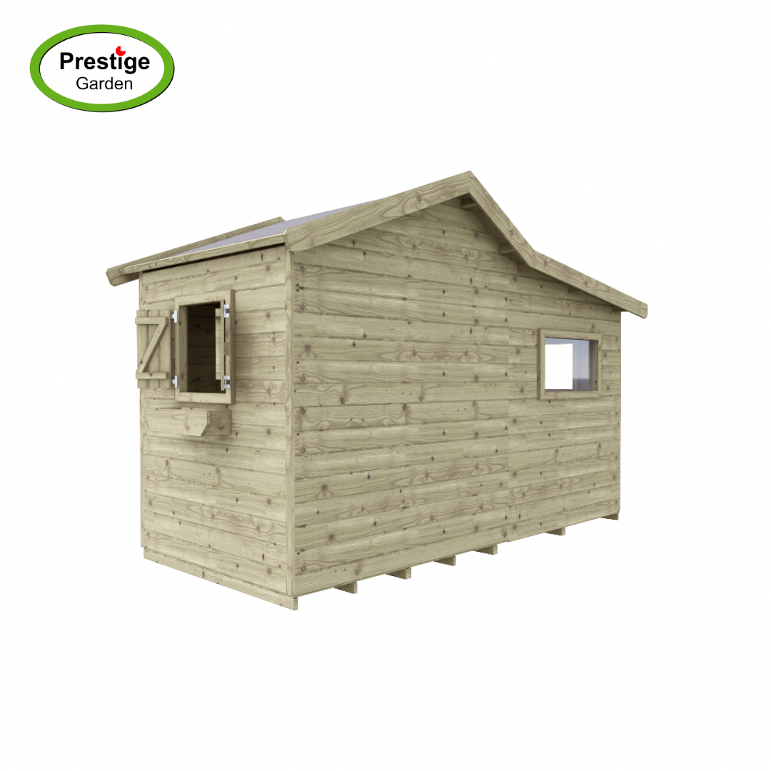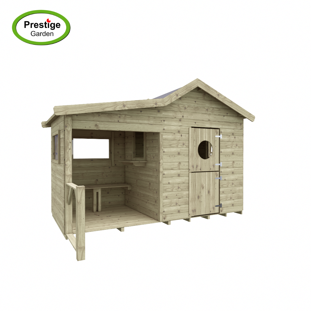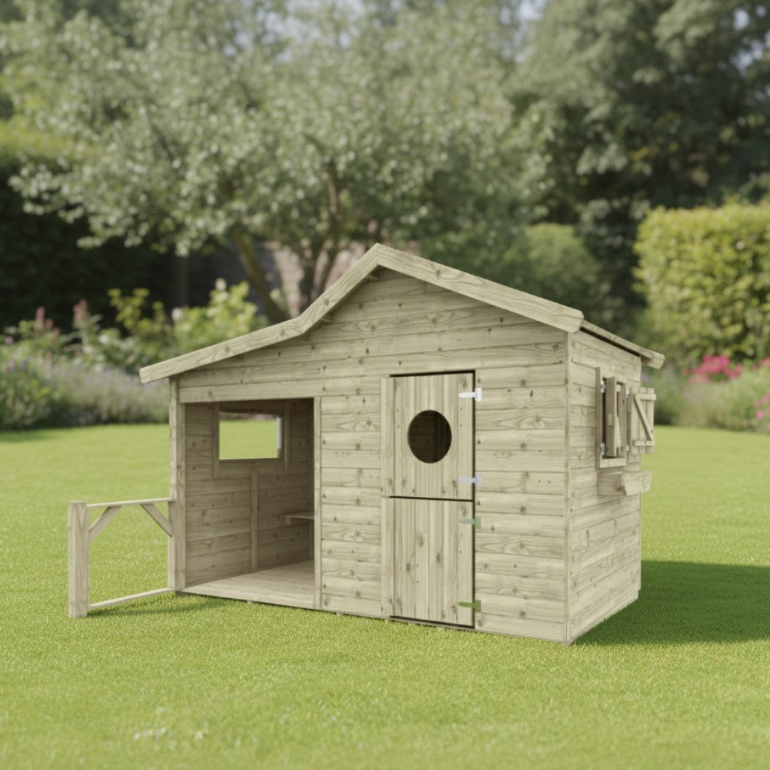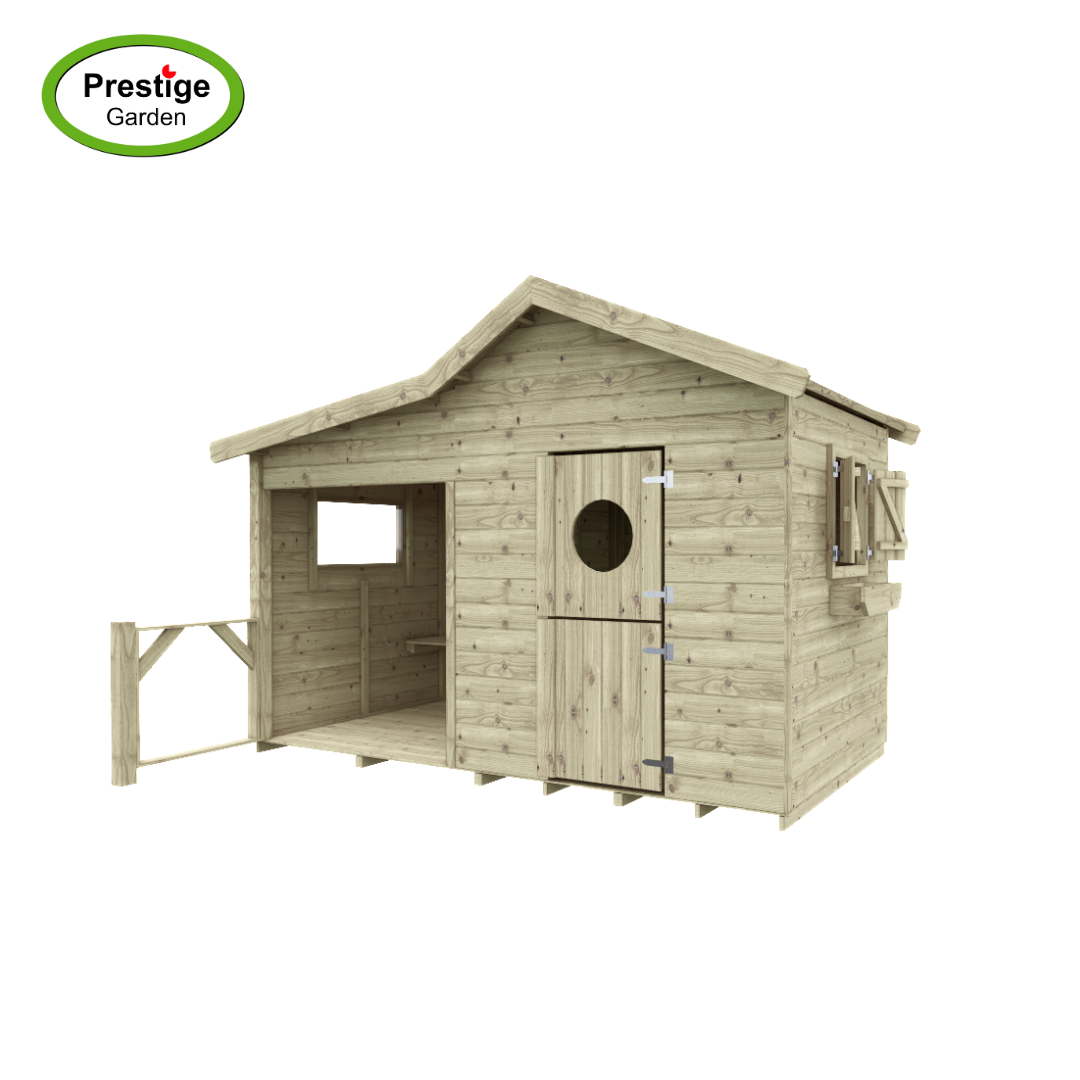 Bent u op zoek naar een prachtig speelpaleisje voor uw kind? Dit speelhuisje is ontworpen met een ruimtelijk design. Het speelhuis is gemaakt van geïmpregneerd grenen hout. Het puntdakje zorgt voor een natuurlijke uitstraling en maakt van dit speelhuisje bijna een woonhuisje! Ook kun je aan de linkerkant handig je skelter parkeren onder de carpoort. Hierdoor blijft je buitenspeelgoed langer goed.Wordt geleverd met: