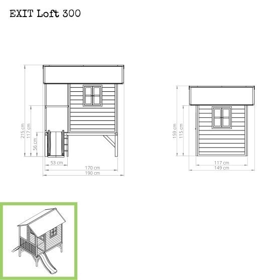 Zoals voor alle speelhuisjes zijn er verschillende accessoires verkrijgbaar voor de EXIT Loft 300 houten speelhuisjes. Wat dacht je van een leuke picknickset met krukjes of een decoratie set waar je mooie tekeningen op kunt maken? Richt je speelplek helemaal in zoals jij het graag wilt en beleef de leukste avonturen in de buitenlucht!