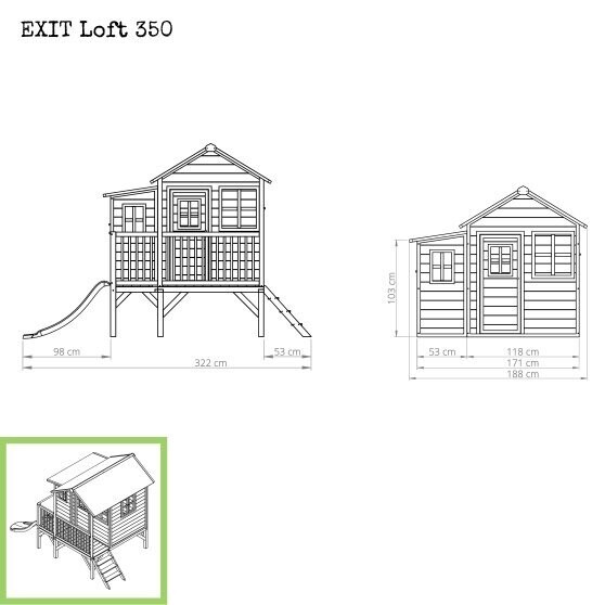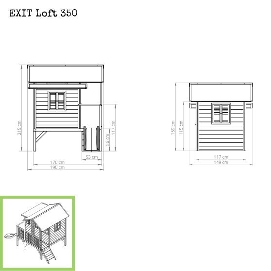 Zoals voor alle speelhuisjes zijn er verschillende accessoires verkrijgbaar voor de EXIT Loft 350 houten speelhuisjes. Wat dacht je van een leuke picknickset met krukjes of een decoratie set waar je mooie tekeningen op kunt maken? Richt je speelplek helemaal in zoals jij het graag wilt en beleef de leukste avonturen in de buitenlucht!