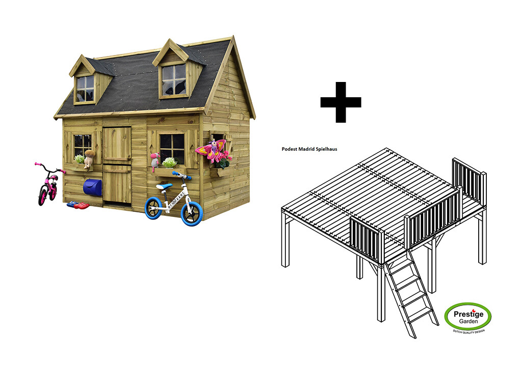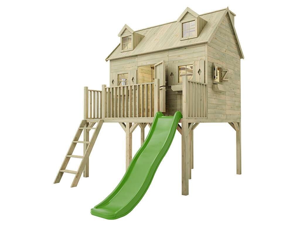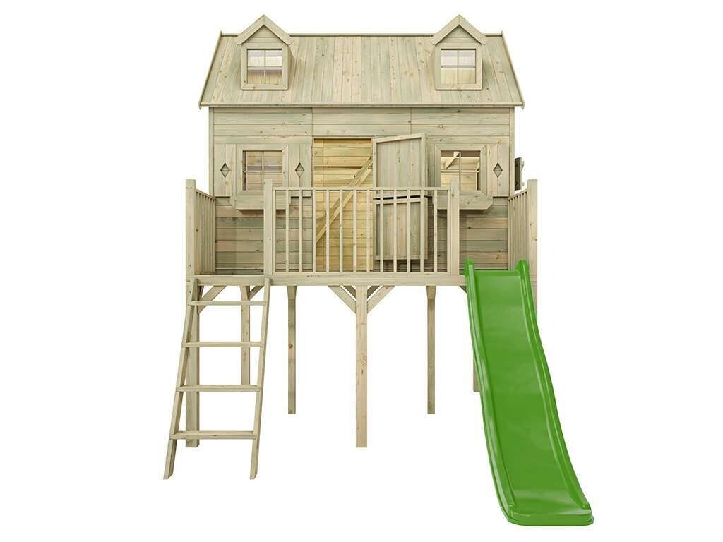 Op zoek naar een prachtig speelhuis voor uw kind? Dit speelhuisje is ontworpen met een ruimtelijk design. Het speelhuis is gemaakt van geïmpregneerd grenen hout. Het puntdakje zorgt voor een natuurlijke uitstraling en maakt van dit speelhuisje bijna een woonhuisje! Wat dit huis nog leuker maakt is dat er zelfs een zolder inzit met dakkapellen!