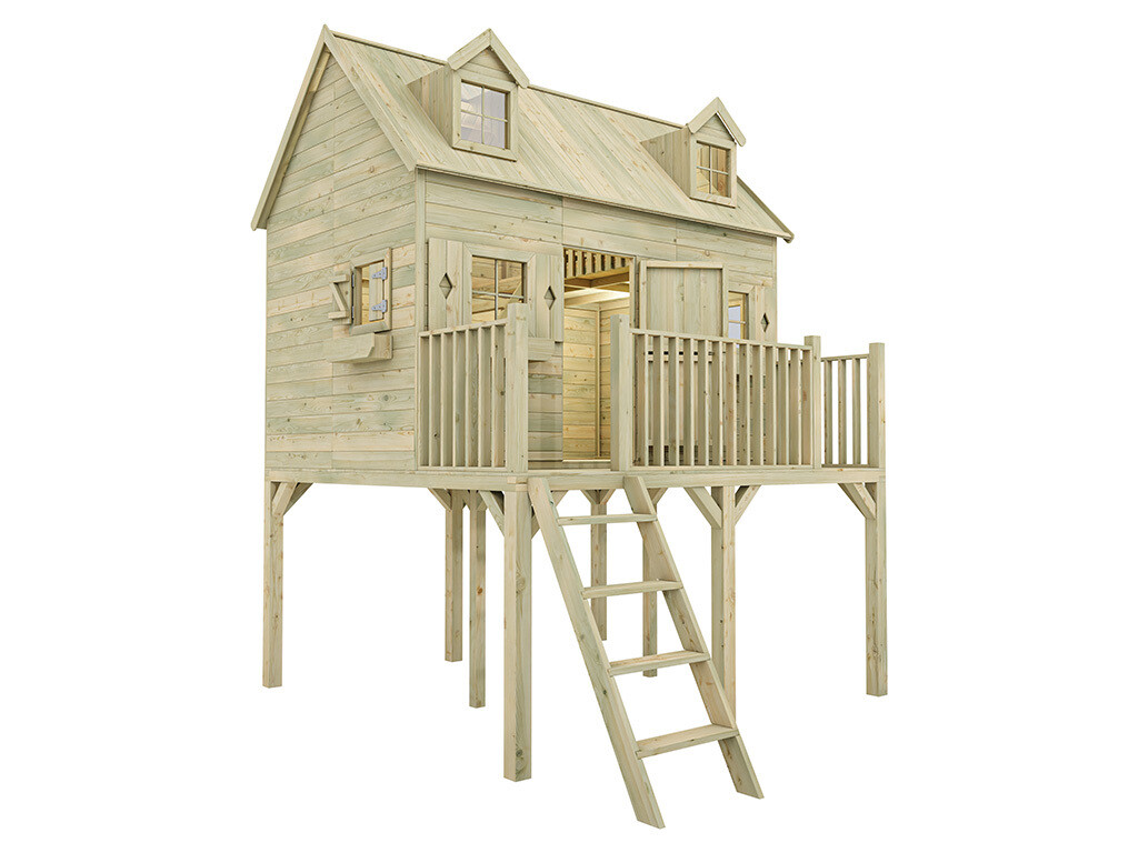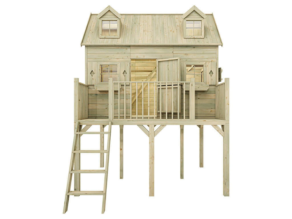Op zoek naar een prachtig speelhuis voor uw kind? Dit speelhuisje is ontworpen met een ruimtelijk design. Het speelhuis is gemaakt van geïmpregneerd grenen hout. Het puntdakje zorgt voor een natuurlijke uitstraling en maakt van dit speelhuisje bijna een woonhuisje! Wat dit huis nog leuker maakt is dat er zelfs een zolder inzit met dakkapellen!