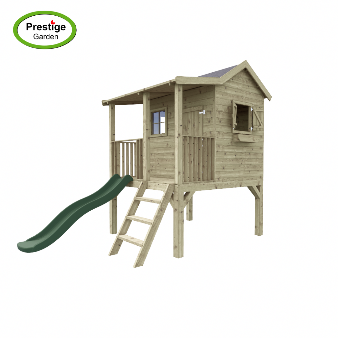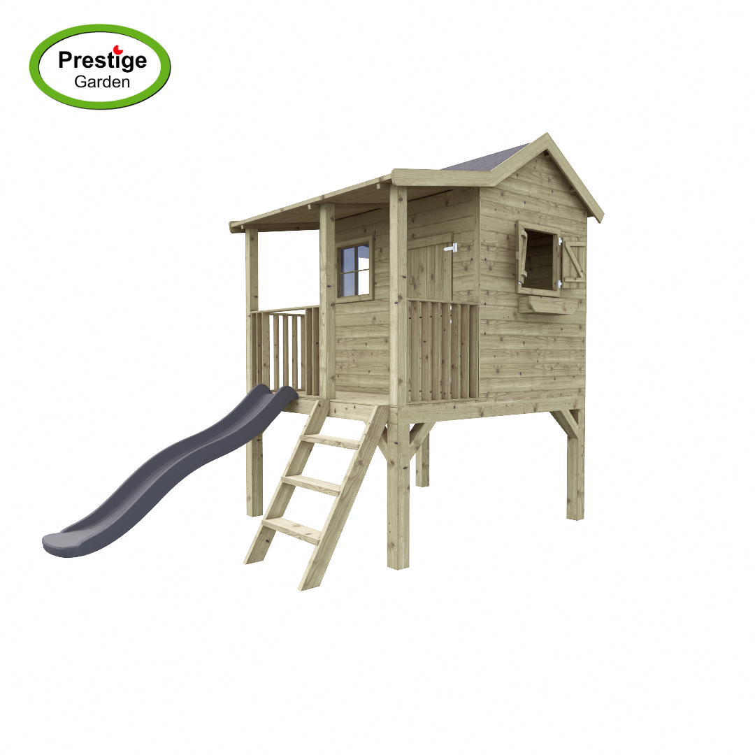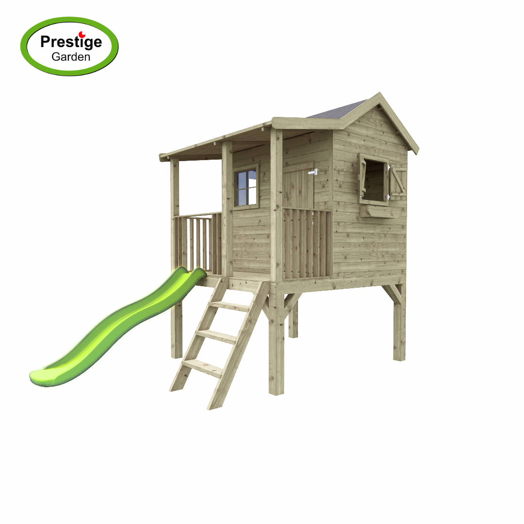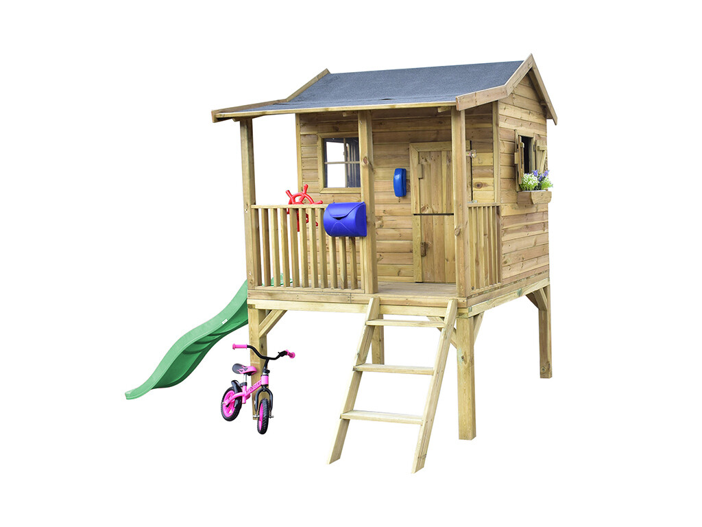 Het speelhuis wordt geleverd met veranda, vloer, 3 ramen en 2 bloembakken. Dit alles zorgt voor veel speelplezier voor de kinderen.