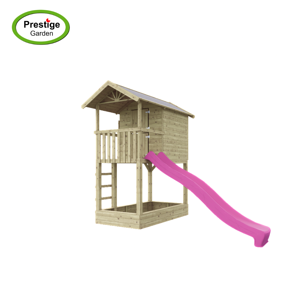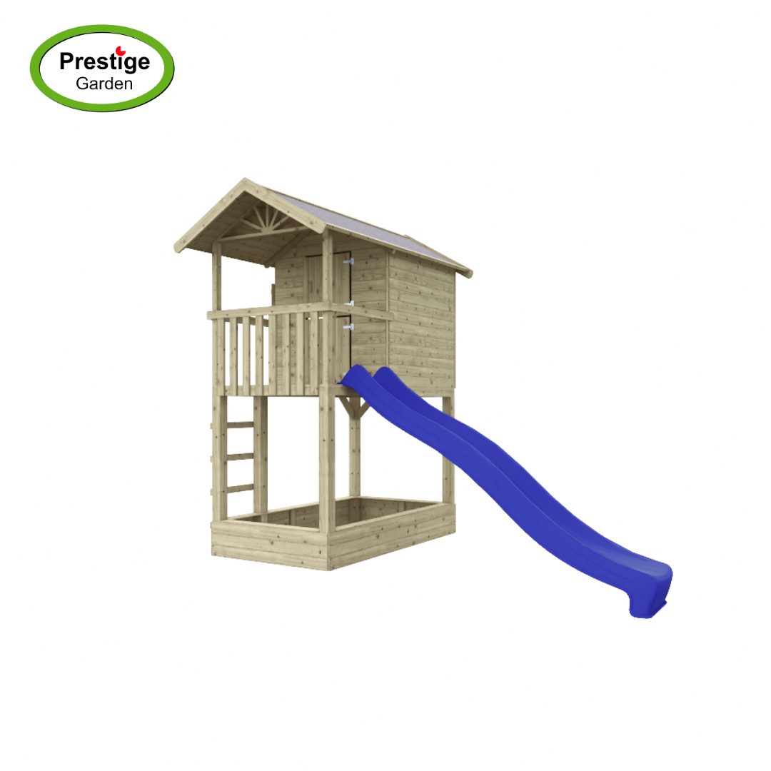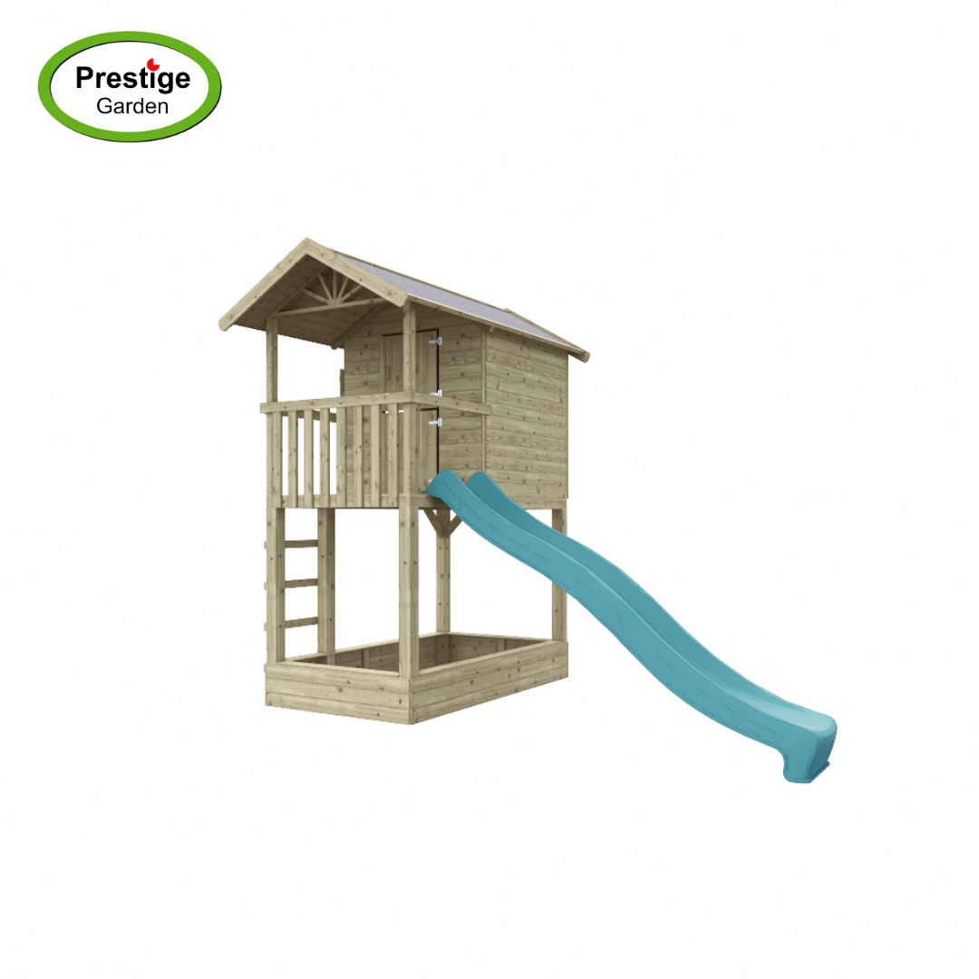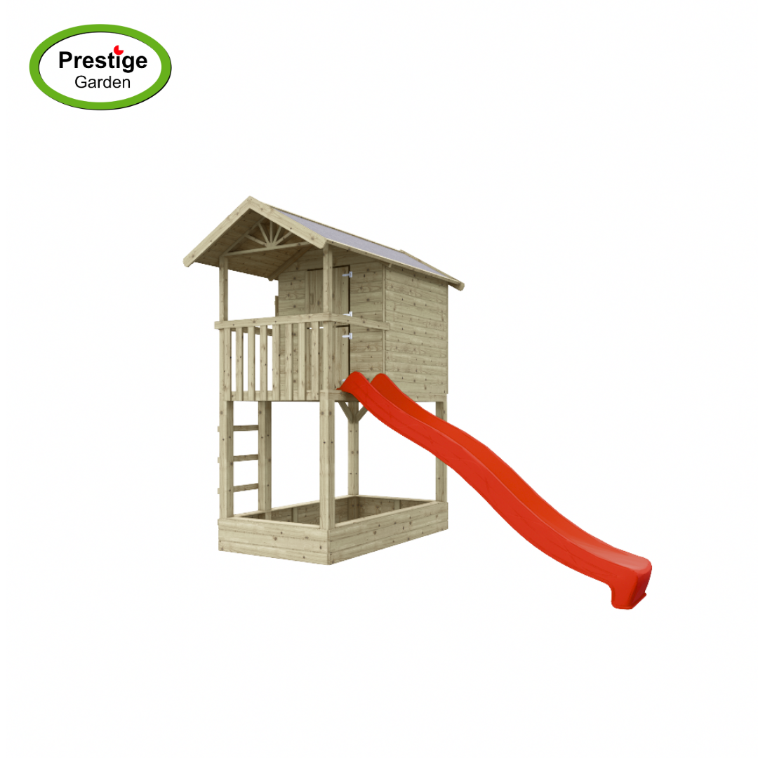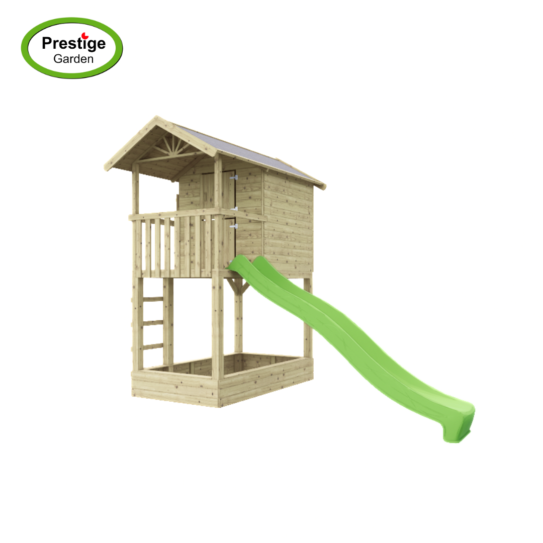 Een speelhuisje wat zorgt voor urenlang speelplezier en gemaakt van geïmpregneerd grenenhout dat zorgt voor een langere levensduur. Het houten speelhuis kan ook met een glijbaan van 300 cm lang geleverd worden. De houten staanders hebben een dikte van ca. 9x9cm. Om de levensduur van de palen te verlengen, en voor extra stabiliteit, adviseren we om de staanders in de speciale paalhouders te verankeren. Met de leuke speeltoestel-accessoires maakt u speelhuis Treehut met zandbak helemaal af! (Afgebeelde accessoires, paalhouders en glijbaan zijn niet inbegrepen).
