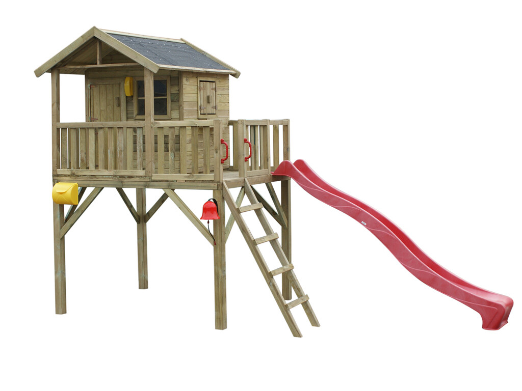 Dit leuke speelhuis wordt nu tijdelijk met gratis glijbaan geleverd! Keuze uit 300cm of 240cm glijbaan. Vermeld tijdens het bestellen bij de opmerkingen welke glijbaan je wilt.
