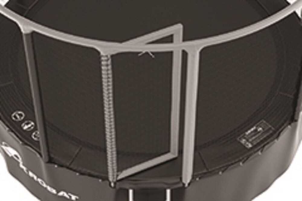 De Akrobat Gallus trampoline van 305 cm is een complete en robuuste trampoline voor de openbare markt. Denk hierbij aan scholen, campings, speeltuinen en restaurants. Uiteraard is de trampoline ook geschikt voor de particuliere tuinen. Beschermrand de grijze beschermrand is gemaakt van extra zwaar PVC zeilmateriaal van 30 mm dik welke extra veiligheid biedt en een lange levensduur heeft. De beschermrand heeft een extra flap van 6 cm breed voor extra veiligheid. Veiligheidsnet de trampoline wordt geleverd inclusief veiligheidsnet en is voorzien van een deur. Dit zorgt voor een eenvoudige en veilige toegang tot de trampoline. Het net zelf heeft is gemaakt van sterk en duurzaam netmateriaal en heeft een grote maaswijdte voor een vrije doorkijk. De stalen staanders zijn extra dik en zwaar. Ook de bovenring is volledig van staal voor een lange levensduur. Springdoek Het zwarte springdoek van de Akrobat Gallus is gemaakt van waterdoorlatend PP weefsel, in hoge dichtheid geweven zodat deze erg sterk is en een lange levensduur heeft. De springmat heeft een gladde textuur waardoor schaafplekken worden vermeden.veren de speciaal ontwikkelde dubbele conische veren zorgen tijdens het springen voor de perfecte combinatie van soepelheid, maximale belastbaarheid en maximale breekweerstand. Deze veren zorgen ervoor dat de trampolines zeer soepel springen. De Akrobat Gallus trampoline wordt geleverd inclusief ladder en schoenenmat. Rondom de poten van de trampoline wordt een afscherming gespannen welke voorkomt dat kinderen onder de trampoline kruipen. Op dit zeil kan optioneel een logo worden geplaatst.