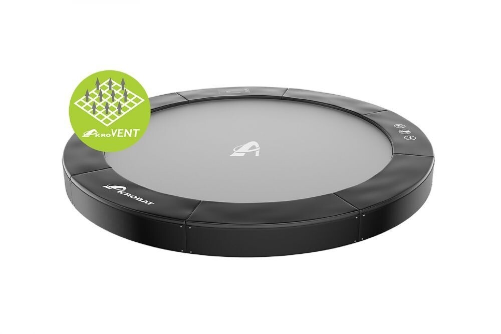 Dit onopvallende volledige ingegraven ontwerp zorgt ervoor dat de Akrobat Trampoline Primus Flat to the ground elegant staat in iedere omgeving. Ook de kleur combinatie van zwart met grijs geeft een zeer strakke en moderne uitstraling.