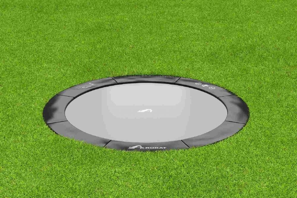Dit onopvallende volledige ingegraven ontwerp zorgt ervoor dat de Akrobat Trampoline Primus Flat to the ground elegant staat in iedere omgeving. Ook de kleur combinatie van zwart met grijs geeft een zeer strakke en moderne uitstraling.